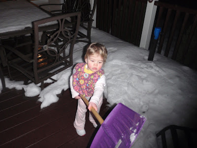 And before you call me (Mom!) - yes, it was warm enough for her to be out for 5 minutes without her coat on. And yes, she is wearing a bib. Don't ask me why. Apparently, it's important to shovel off the deck immediately after eating! :)